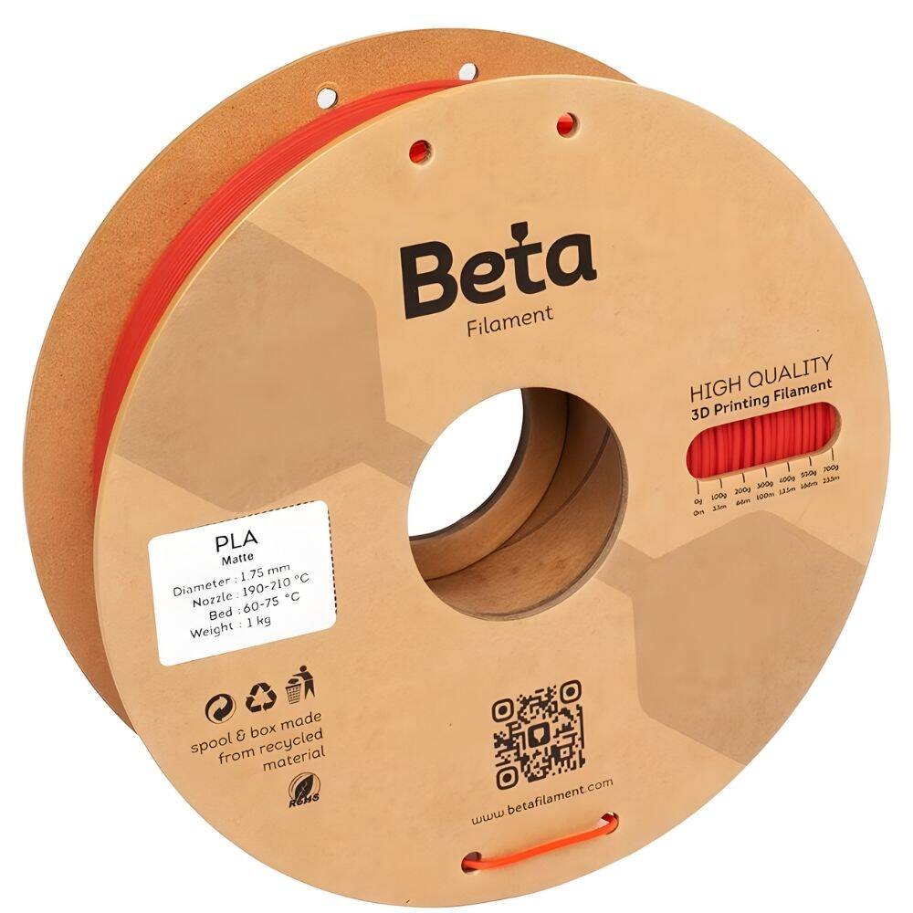 Beta Matte PLA, mat yüzey dokusu sayesinde 3D baskılarınıza doğal, yansımasız ve modern bir görünüm kazandıran özel bir filamenttir. Mat katkı formülü sayesinde ışığı dağıtarak yüzeydeki parlaklığı en aza indirir ve parçalarınızın tasarım detaylarını daha net ve sade bir şekilde ortaya çıkarır. Özellikle profesyonel prototipler, dekoratif objeler ve estetik odaklı baskılar için ideal bir tercihtir.